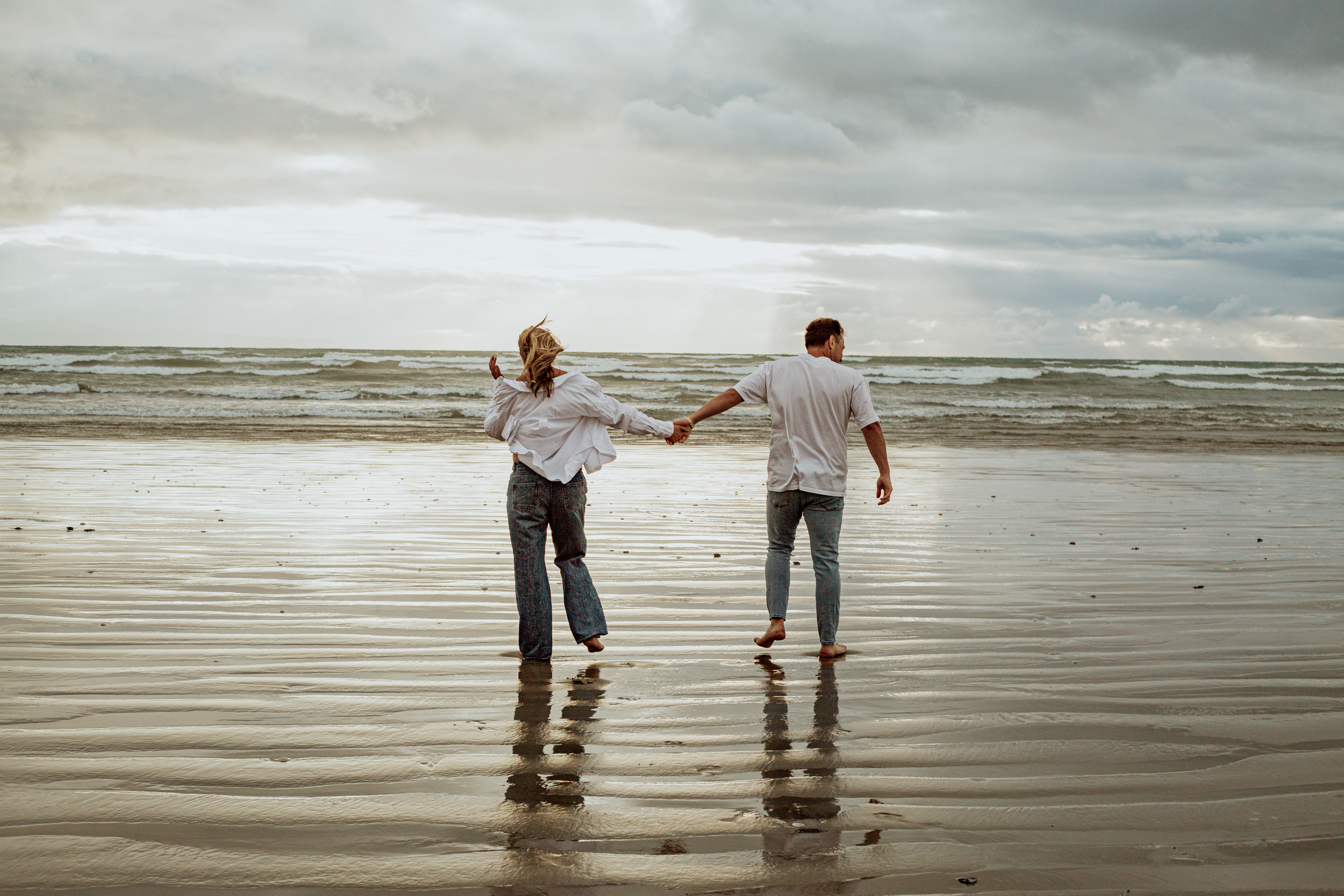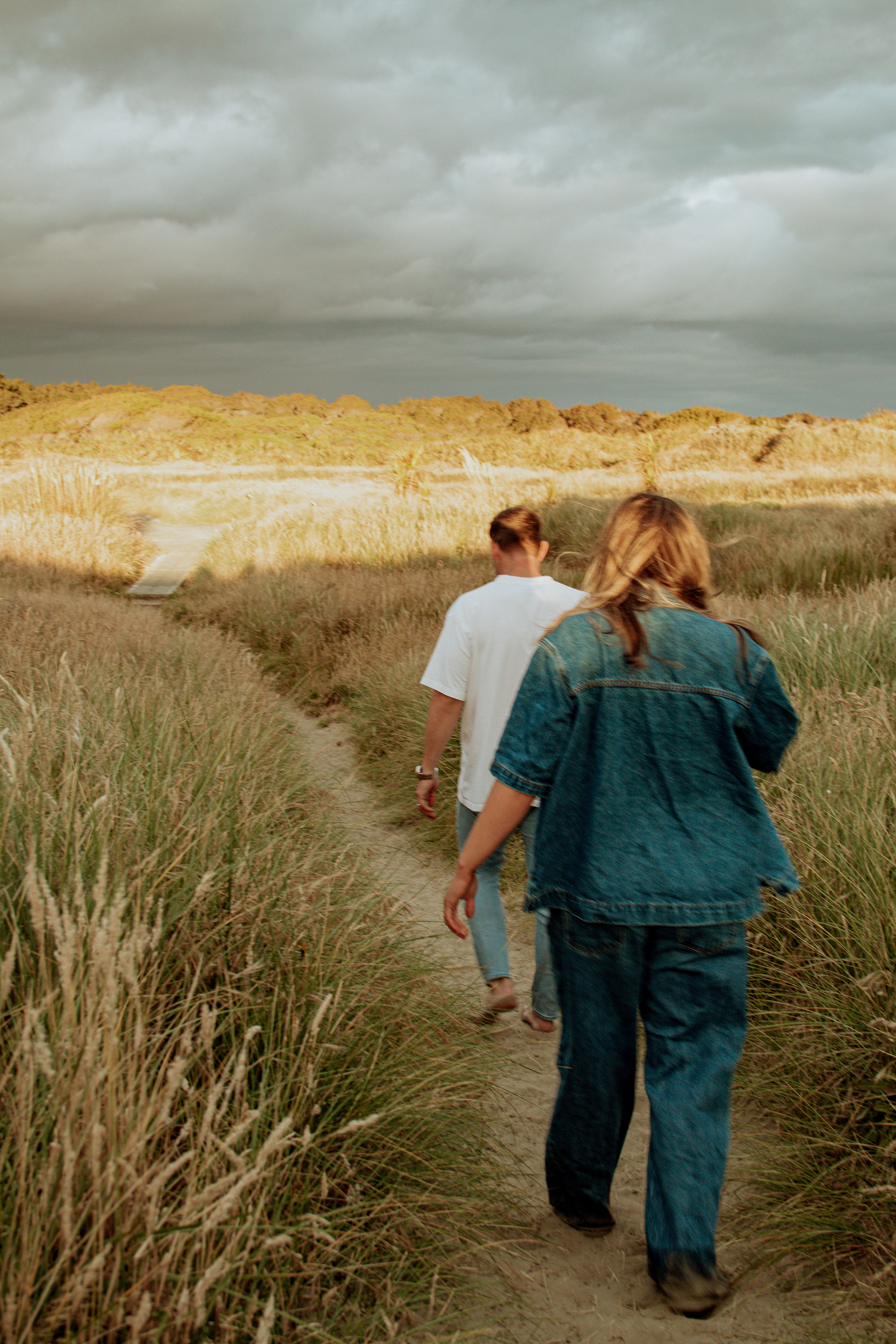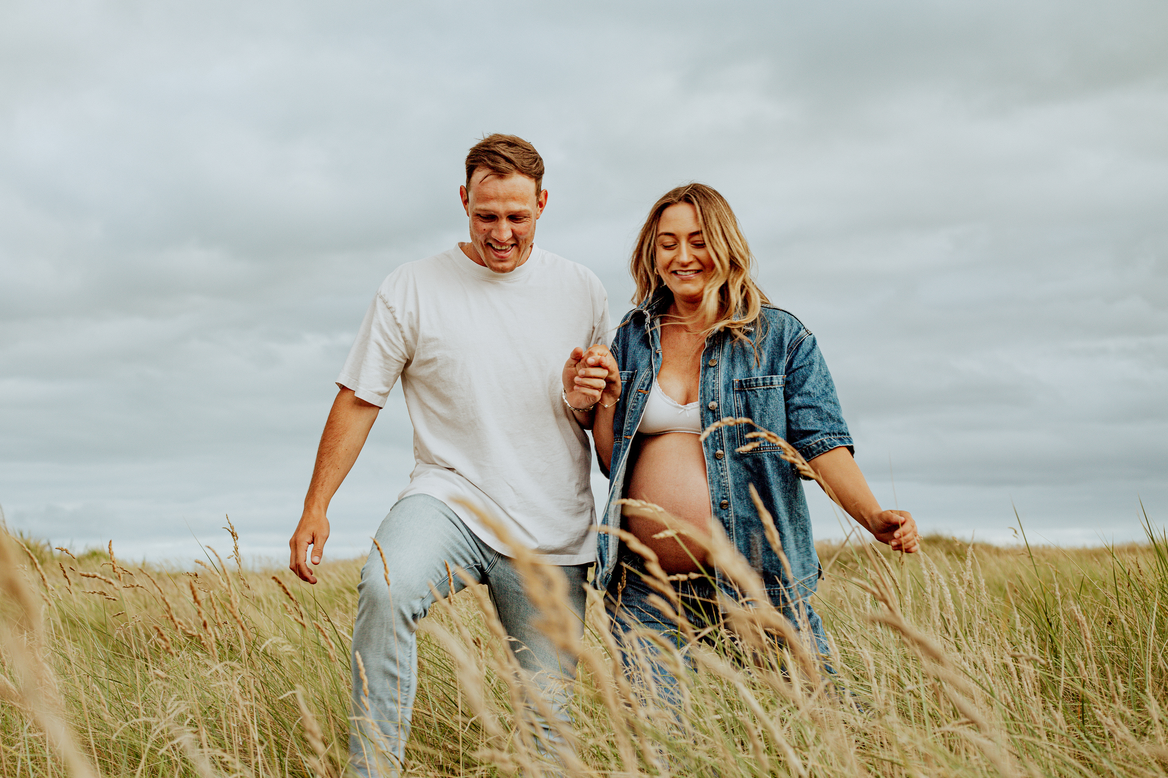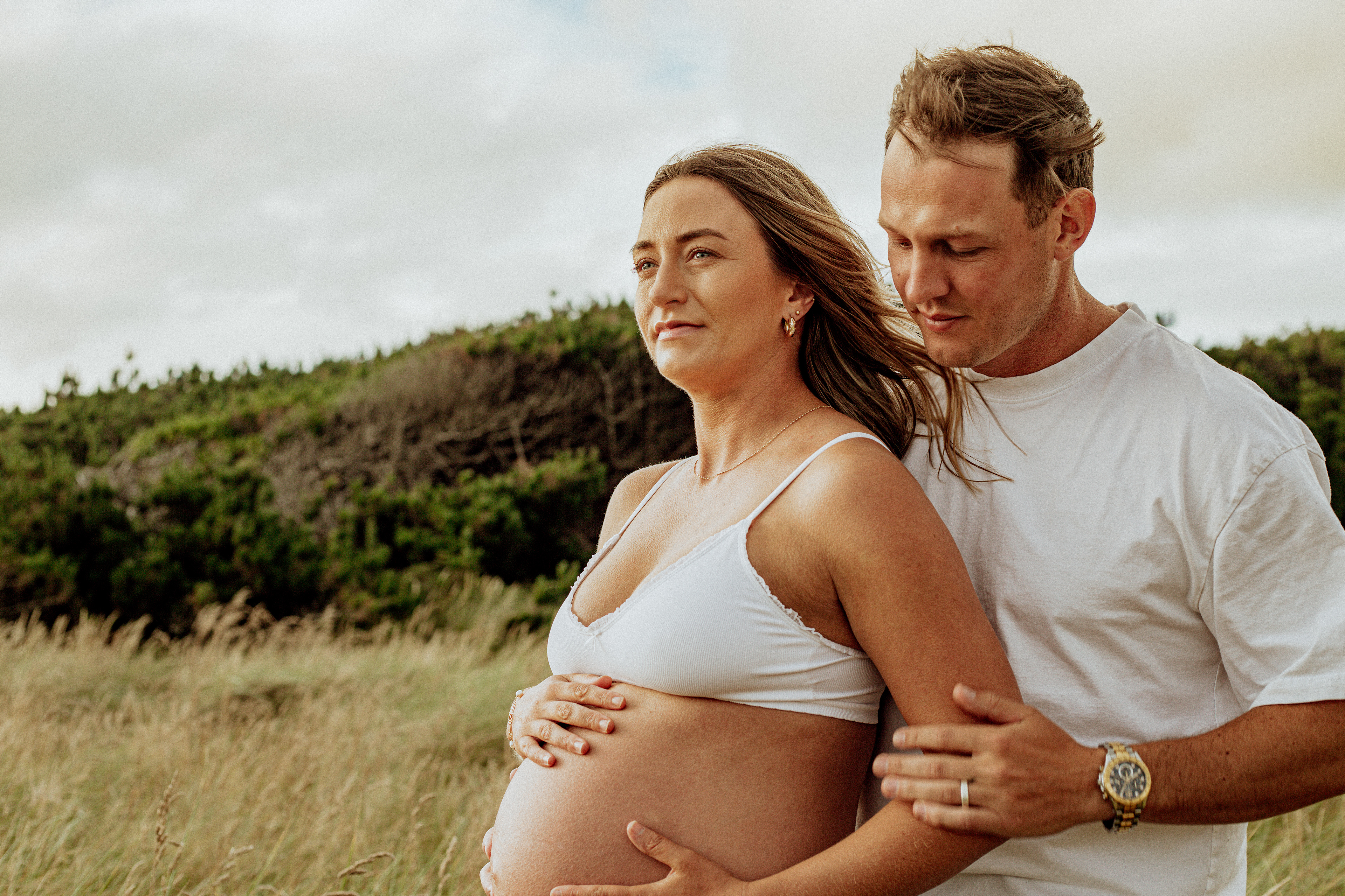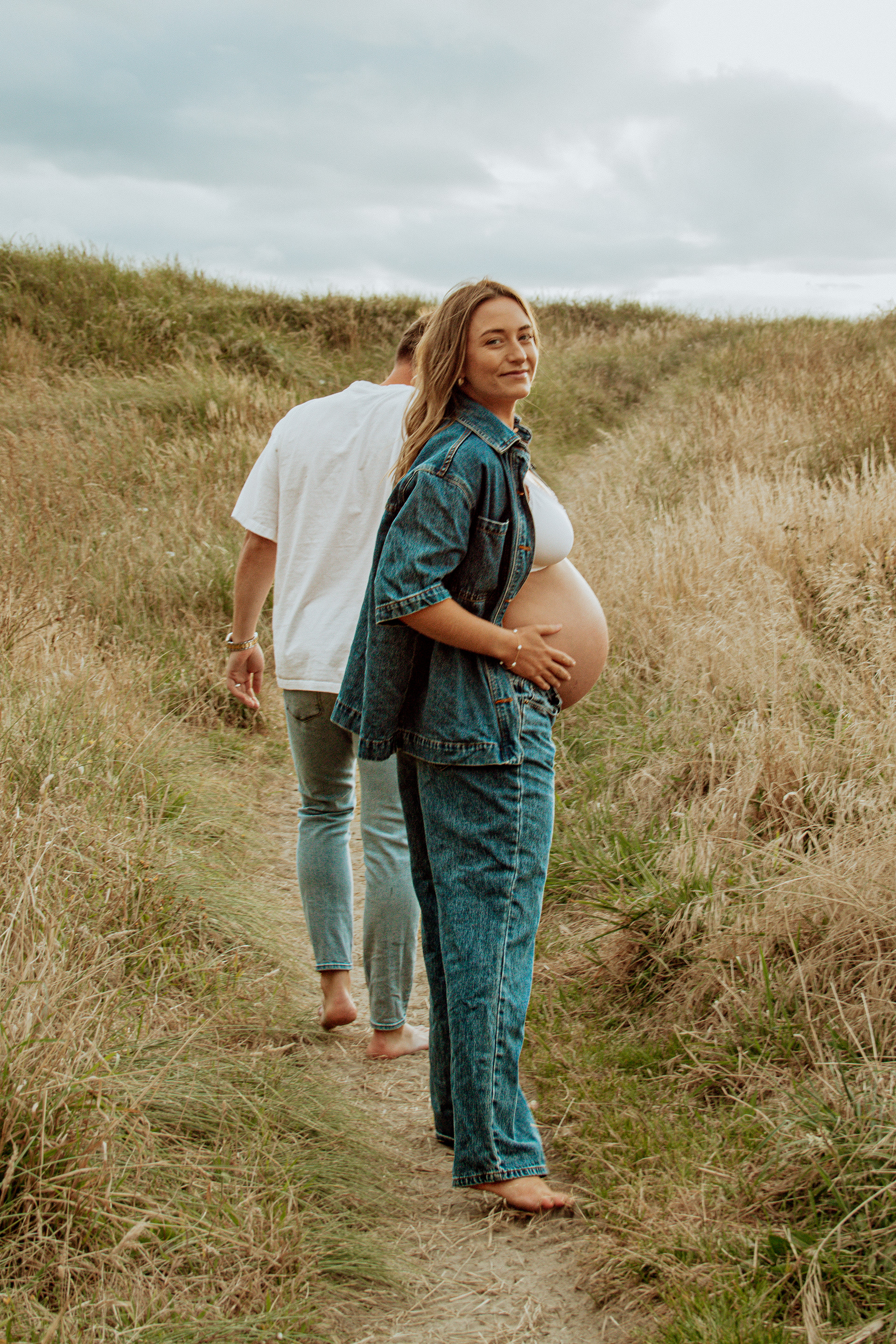A sunset maternity session with the Howleys, filled with warm light, soft tones, and the quiet excitement of a baby on the way. Southland weather can be unpredictable, and this evening was no exception. After a day of watching the skies and checking conditions in Ōtātara, the clouds finally cleared and the sun broke through at exactly the right moment. The result was that perfect golden glow, gentle, flattering, and full of warmth. Set against the sand and sea, the session felt relaxed, joyful, and deeply connected. A beautiful way to pause, soak in the moment, and celebrate this season before their family grows.